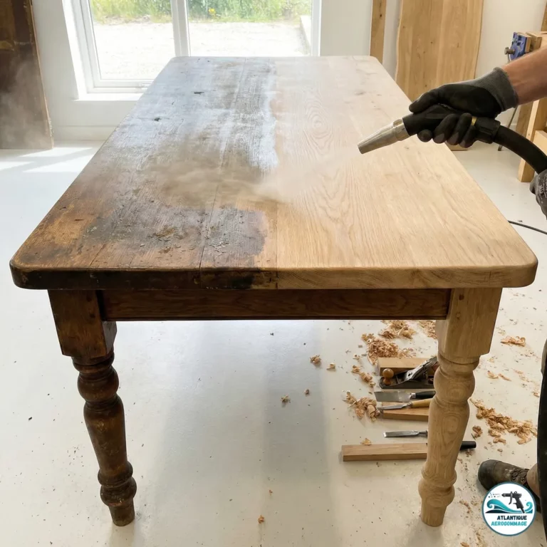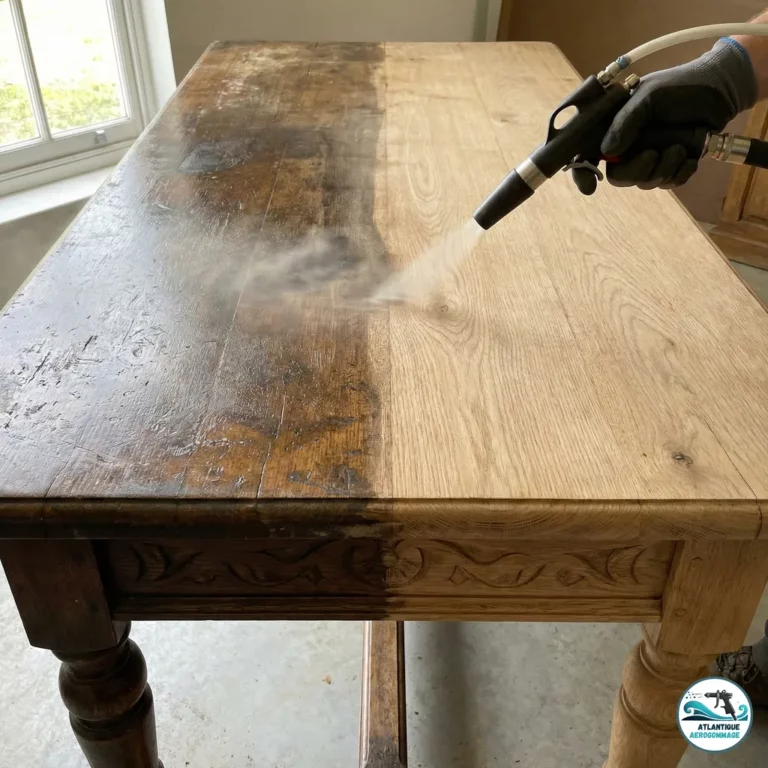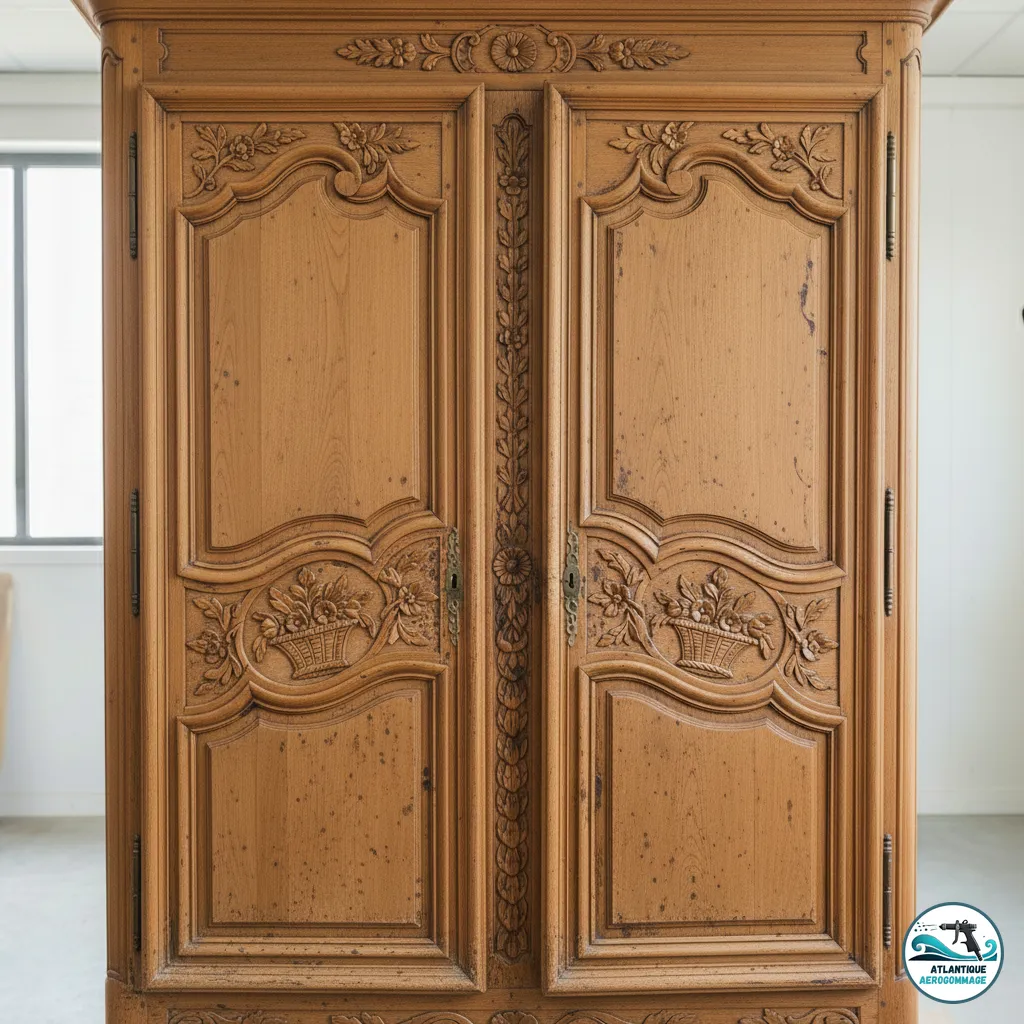 Redonnez vie à vos meubles anciens grâce à l’aérogommage, une méthode douce et écologique qui préserve le bois. Armoires, buffets, commodes, tables : notre atelier à Vertou restaure votre patrimoine familial en Loire-Atlantique et Vendée.