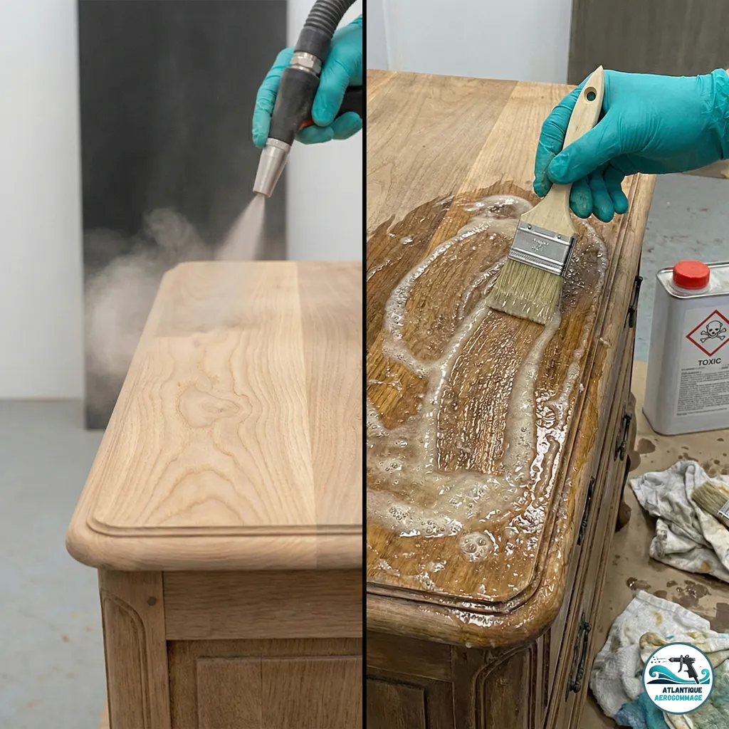 Face à un meuble ancien à restaurer, le choix de la méthode de décapage conditionne la qualité du résultat et la préservation du bois. Décapants chimiques et aérogommage offrent des approches radicalement différentes avec des impacts contrastés sur la santé, l’environnement et l’intégrité du meuble. Découvrez pourquoi l’aérogommage s’impose comme
