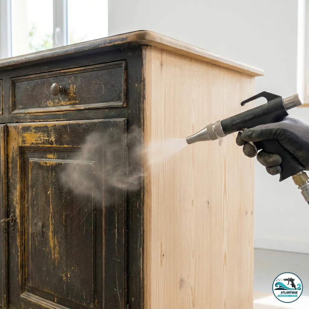 Transformez vos meubles rustiques en pin avec notre technique d’aérogommage ultra-douce. Révélez la beauté naturelle du bois pour un style contemporain scandinave. Finitions mates tendance. Intervention Loire-Atlantique et Vendée. Devis gratuit sous 24h.